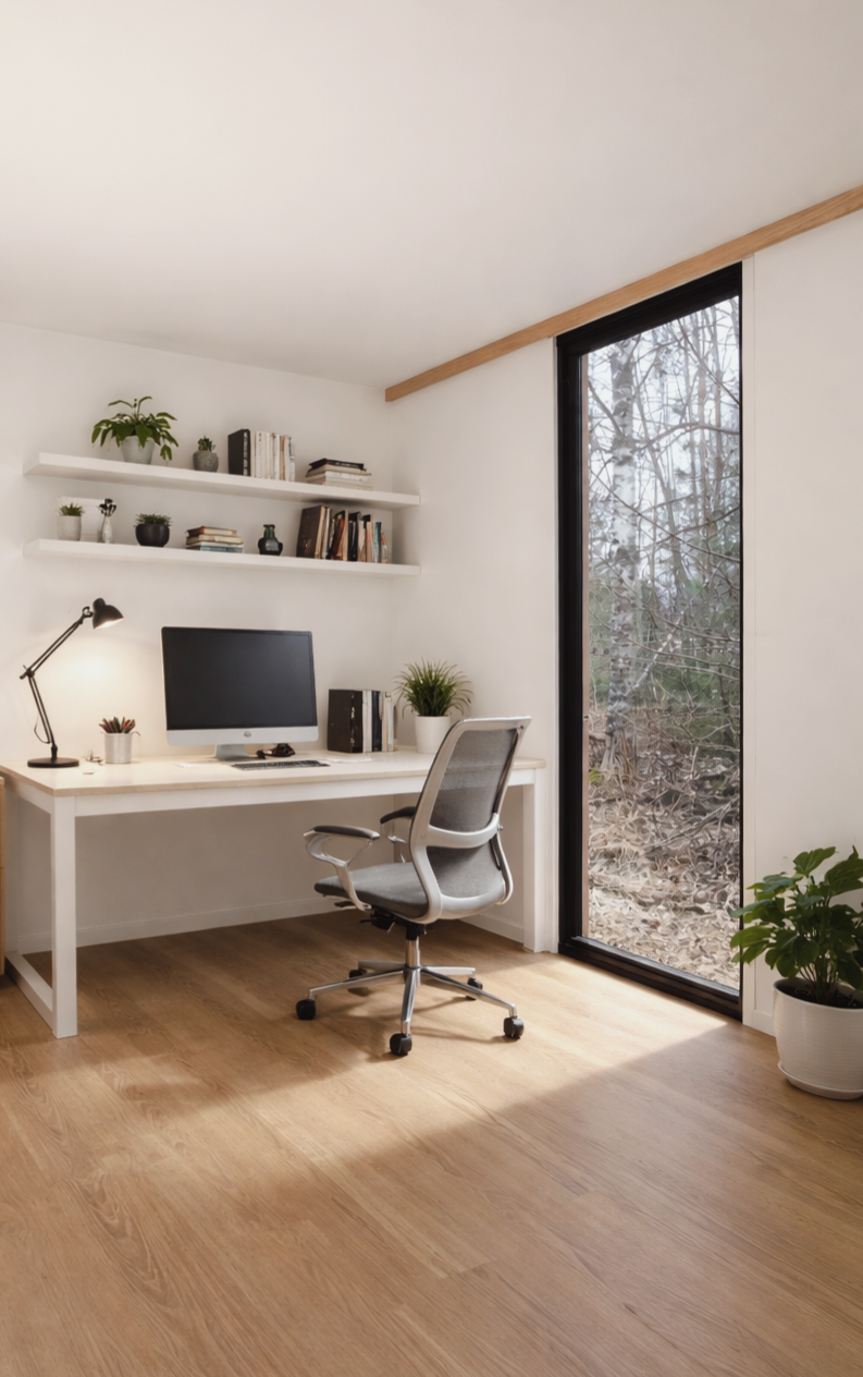 Erillinen työtila piharakennuksessa tuo rauhaa ja tehokkuutta työskentelyyn. Toteutamme toimivat ja viihtyisät työtilat etätyöhön, yritystoimintaan tai harrastuksiin. Hyvin suunniteltu työtila parantaa keskittymistä ja erottaa työn ja vapaa-ajan selkeästi toisistaan.